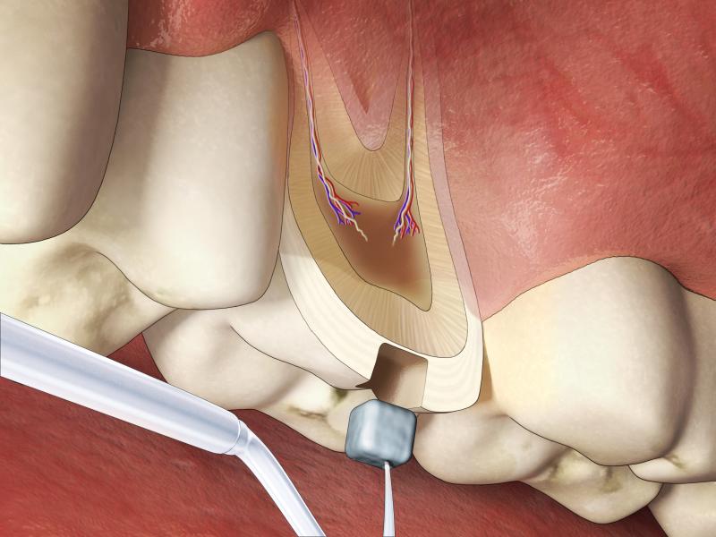 Diş çürüğü, dental pulpa zarar vermişse , diş hekimi dolguyu gerçekleştirmeden önce diş sinirini almak için kök kanalını dezenfekte ederek dişi uyuşturur.